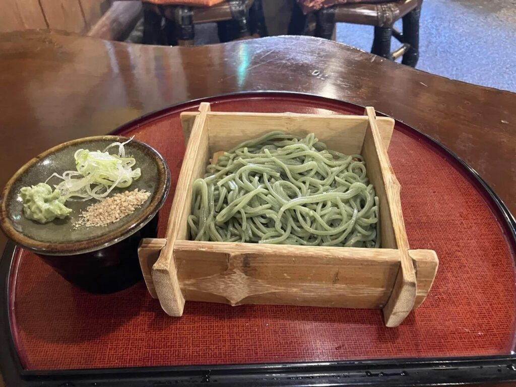 午前中は宿で執筆タスク。お昼は松崎まで歩き(バスも使えます)、民芸茶房で桜の葉が練り込まれたさくら蕎麦を食べました。桜餅のような香りがしていて良き。