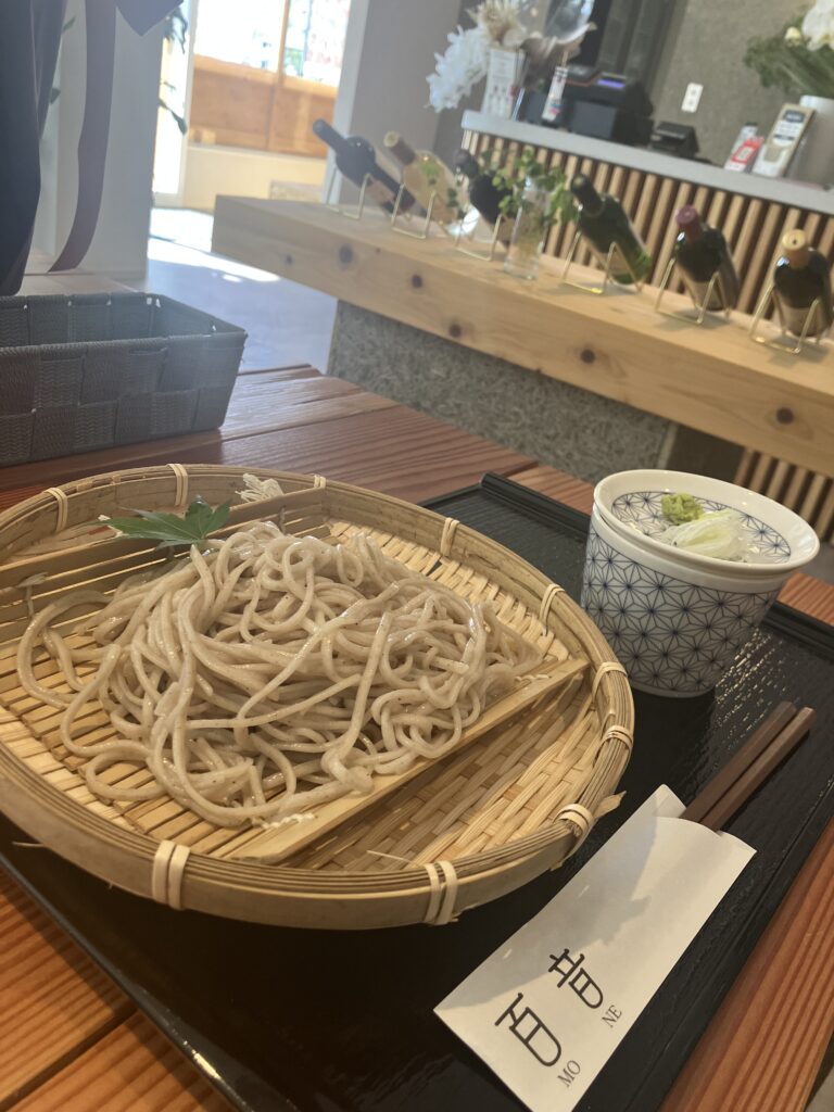 到着したらまずはお昼ご飯。蕎麦・ほうとうなどが食べられるレストラン、百音で十割蕎麦を頂きました。今時のスタイリッシュカフェのような空間で食べるざる蕎麦は新鮮。