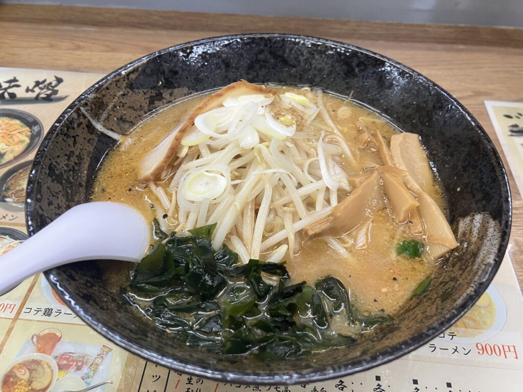その後は看板に「激うま」と書いてあって気になっていたラーメン専科で、専科味噌ラーメンをいただきました。野菜多めで七味のきいた味噌スープにもちもちの太麺、激うまでした!